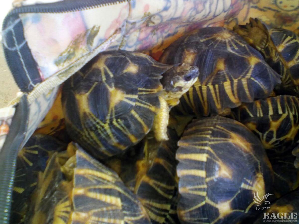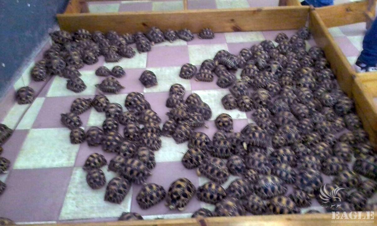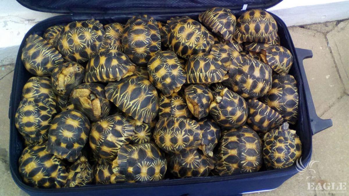 The newest EAGLE project (called ALARM) developed by Alliance Voatary Gasy (AVG) in Madagascar launched magnificently! 5 traffickers with 199 radiated tortoises arrested during the first operation carried out by ALARM team and police. The traffickers arrived to a hotel in the centre of capital city with an intention to sell the tortoises. They were carrying them in suitcases in very harsh conditions for these sensitive animals. They were arrested in the act during the attempt to sell them.