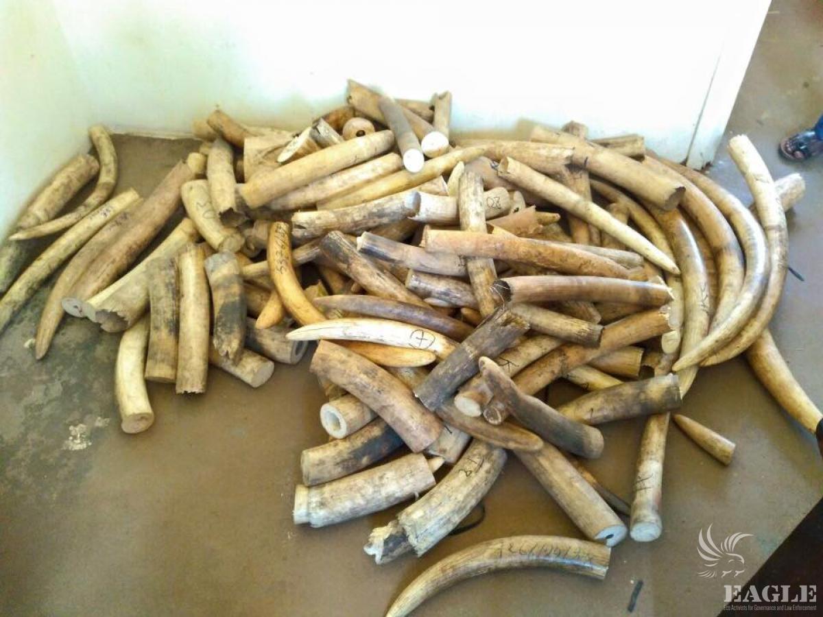 2 major international traffickers arrested with 250 kg of raw Ivory! The two are in the heart of an international ring with links to several countries. One of them is Ugandan, but the other one is residing in DRC.