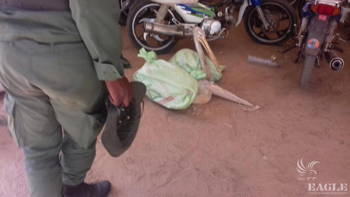 3 wildlife traffickers arrested with 2 pelicans, 4 young ostriches, a yellow billed stork, a black kite, a crocodile and 5 spur-winged geese. The live animals trafficking ring operated since 2006 across Senegal, Gambia and Mauritania and is responsible for international trafficking of a great volume of threatened species including live hyenas and lions. One of their phones include a long list of contacts of magistrates, governors, colonels, customs officers, enforcement officials and many others that probably served as a corrupt circle of complicity ensuring the impunity of this ring.