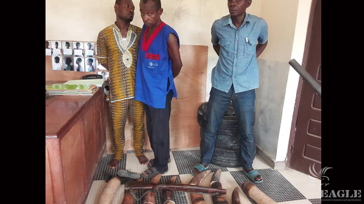 3 ivory traffickers arrested with 7 tusks in the central part of the country. Two of them were arrested in the attempt to sell the tusks cut in several pieces. After the arrest they denounced the head of the gang, who is a teacher in nearby town. He was swiftly arrested the same day and a hunting gun was found in his house.