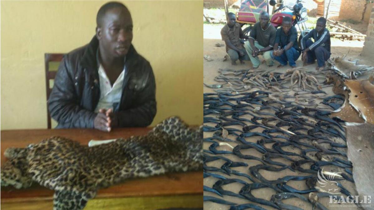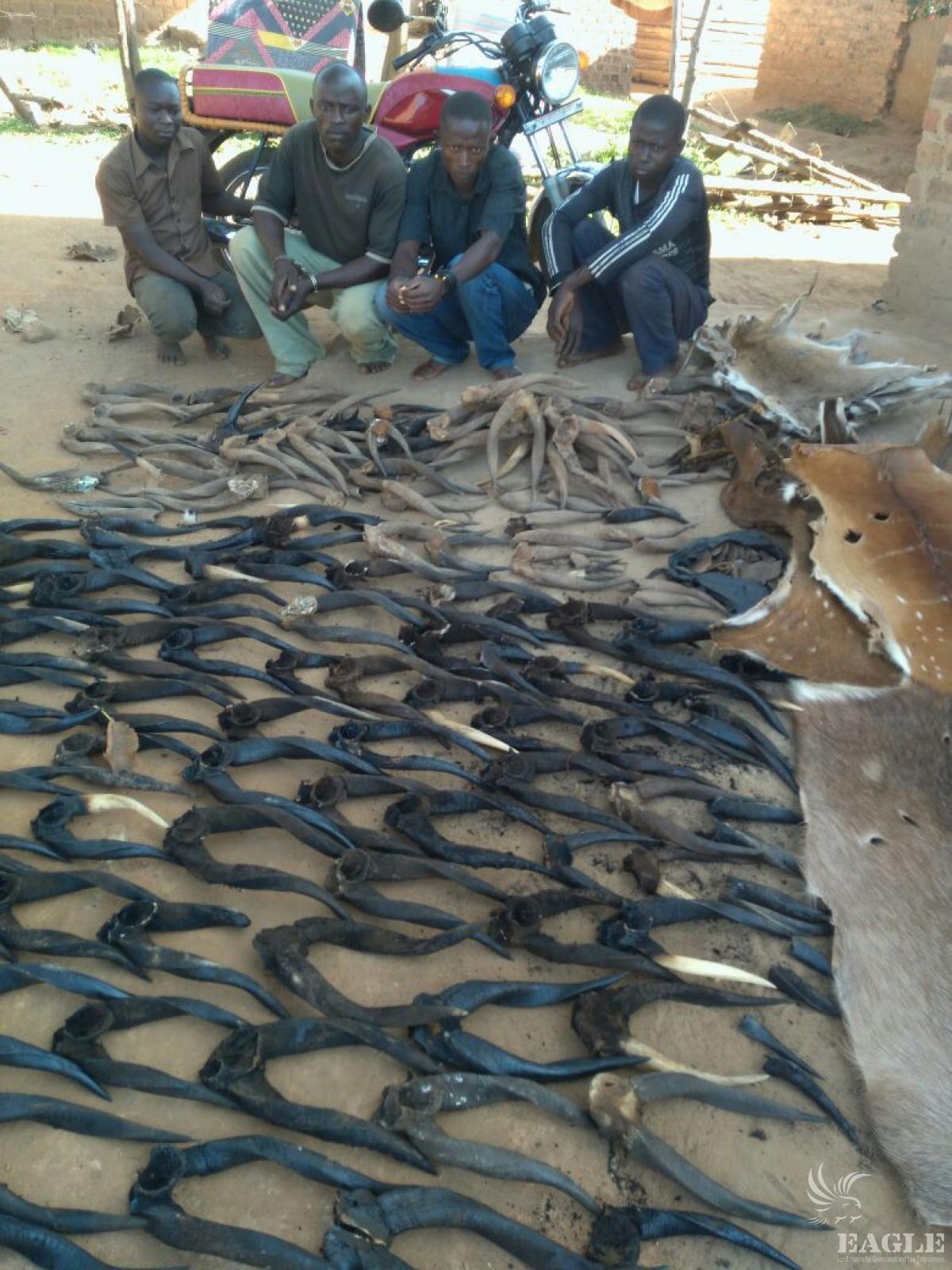 4 traffickers arrested with many skins and 147 horns of protected antelopes and in a related arrest coming from the same investigation, another trafficker arrested in the north of Uganda with a leopard skin.