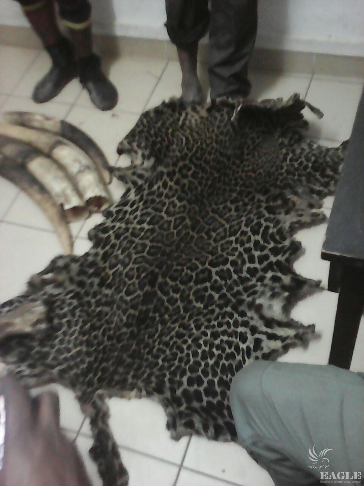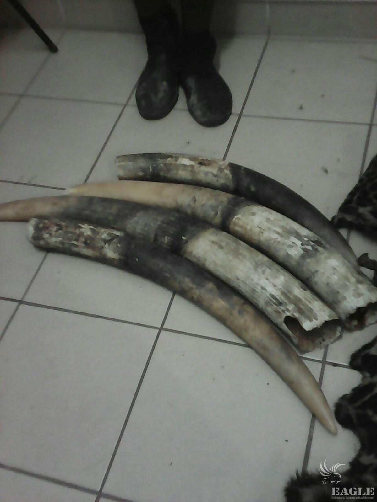 3 traffickers arrested with 4 tusks and a leopard skin. The first of them was arrested in the act, when he attempted to sell the tusks. He revealed 2 more traffickers, who were arrested in their house, the leopard skin was seized from them.