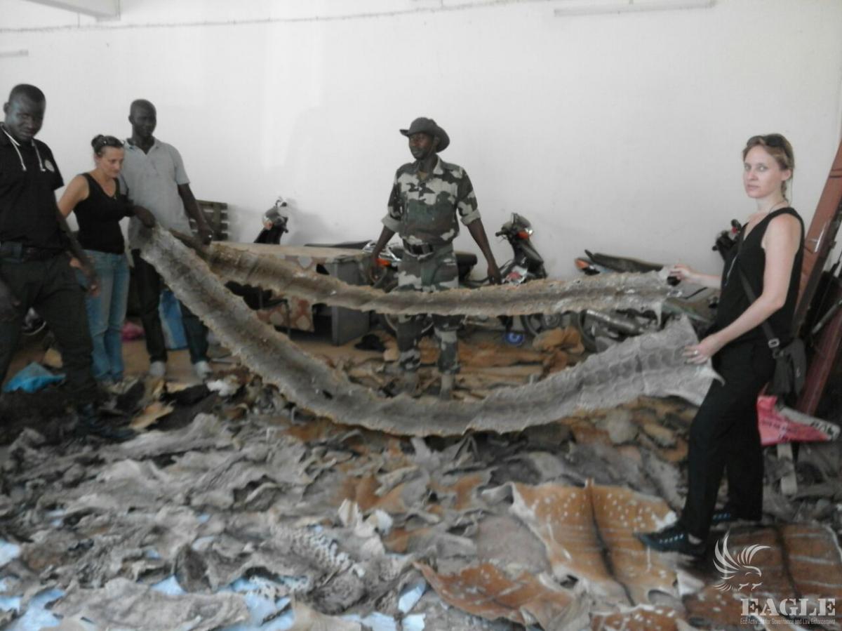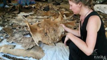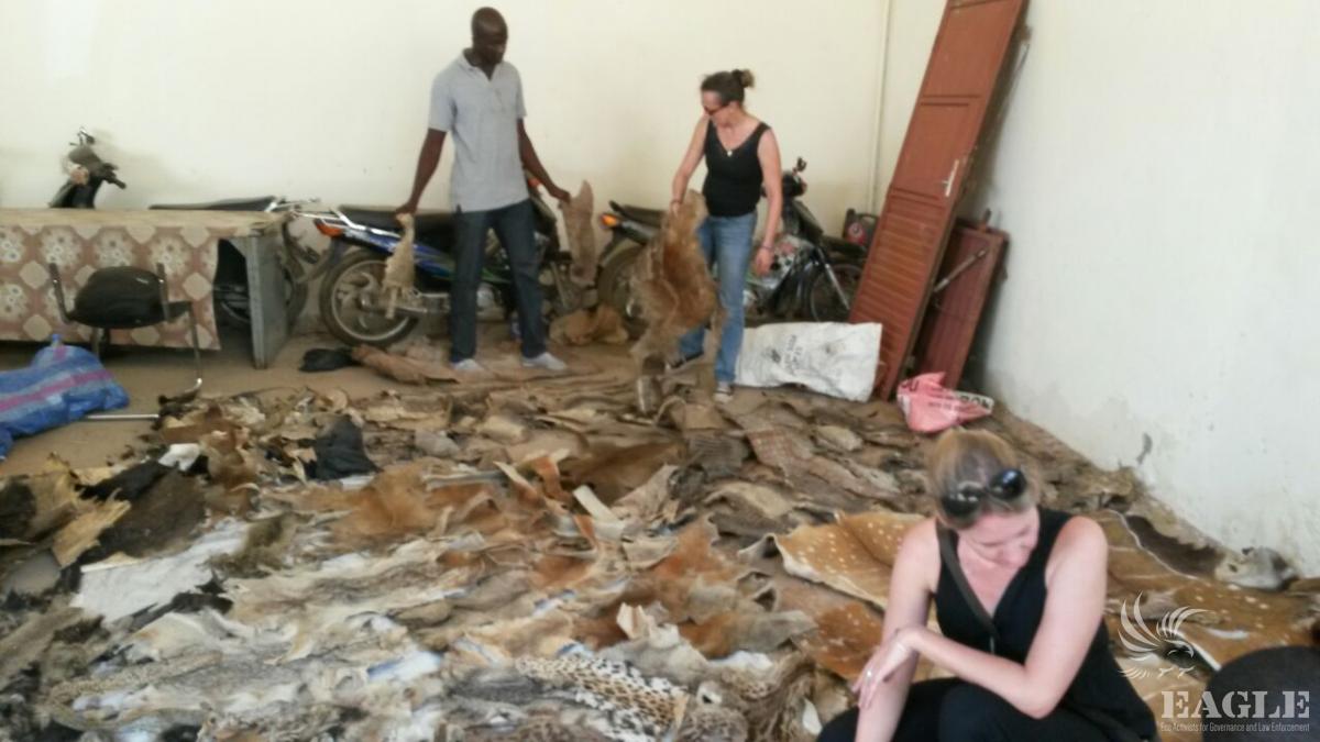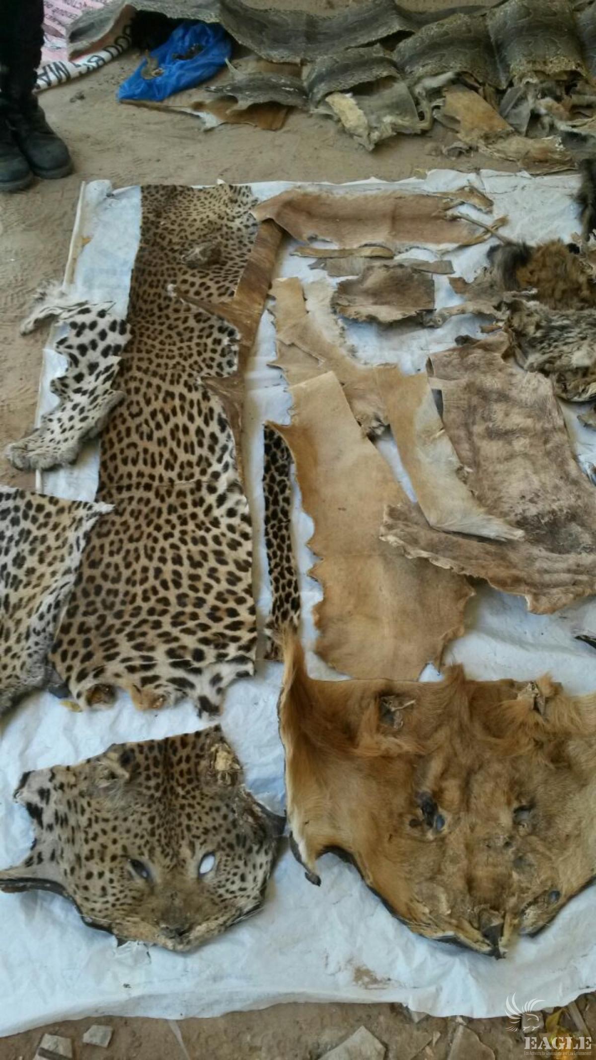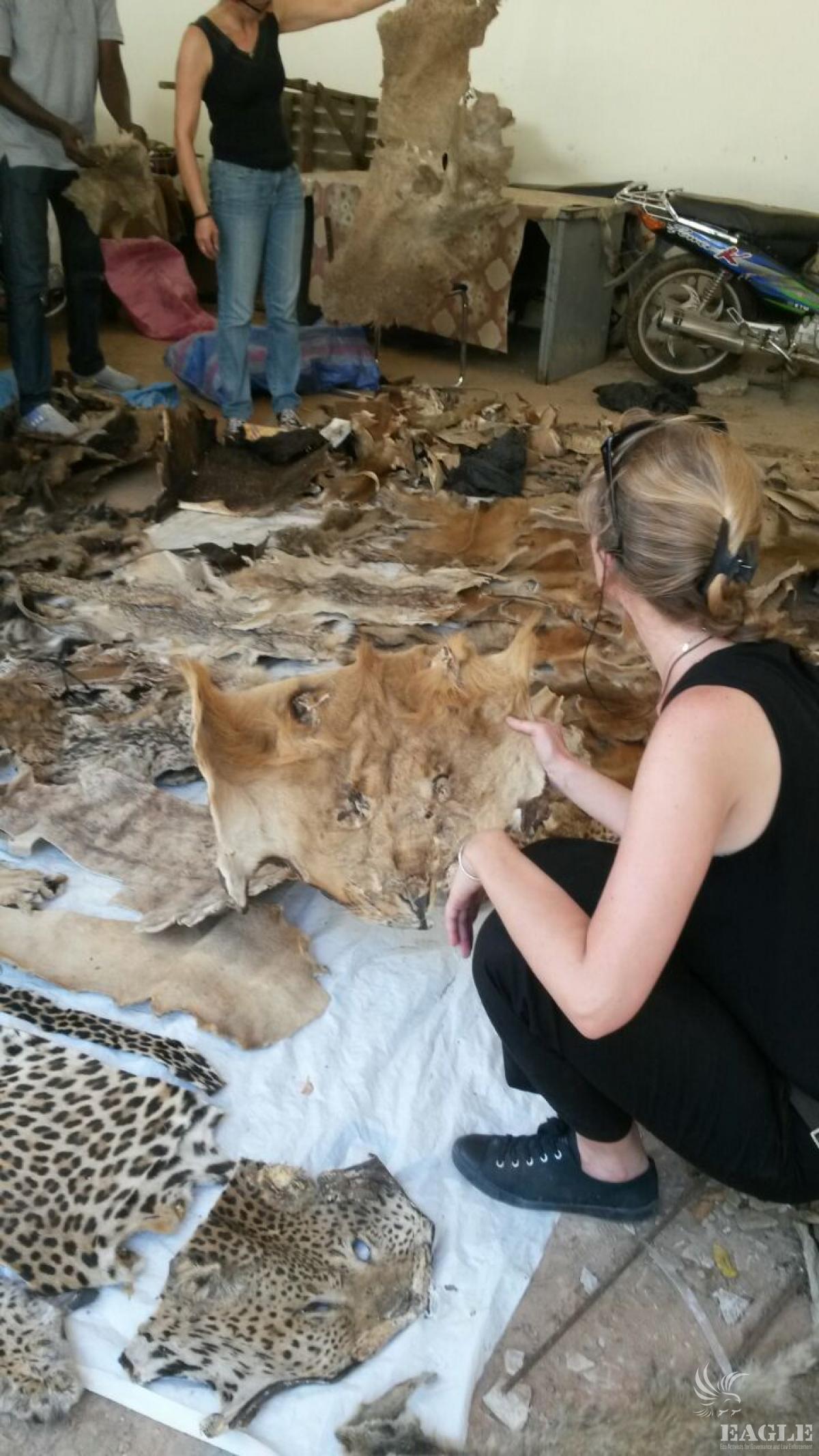 Charlotte Houpline, Cecile and the SALF team in a crackdown on illegal trade in skins! A major trafficker arrested with lion and leopard skins and total of 106 skins of 11 different protected species!