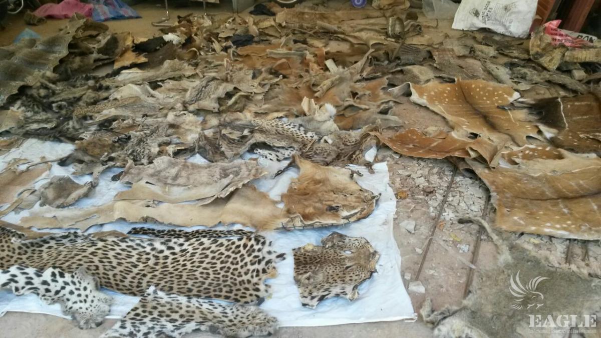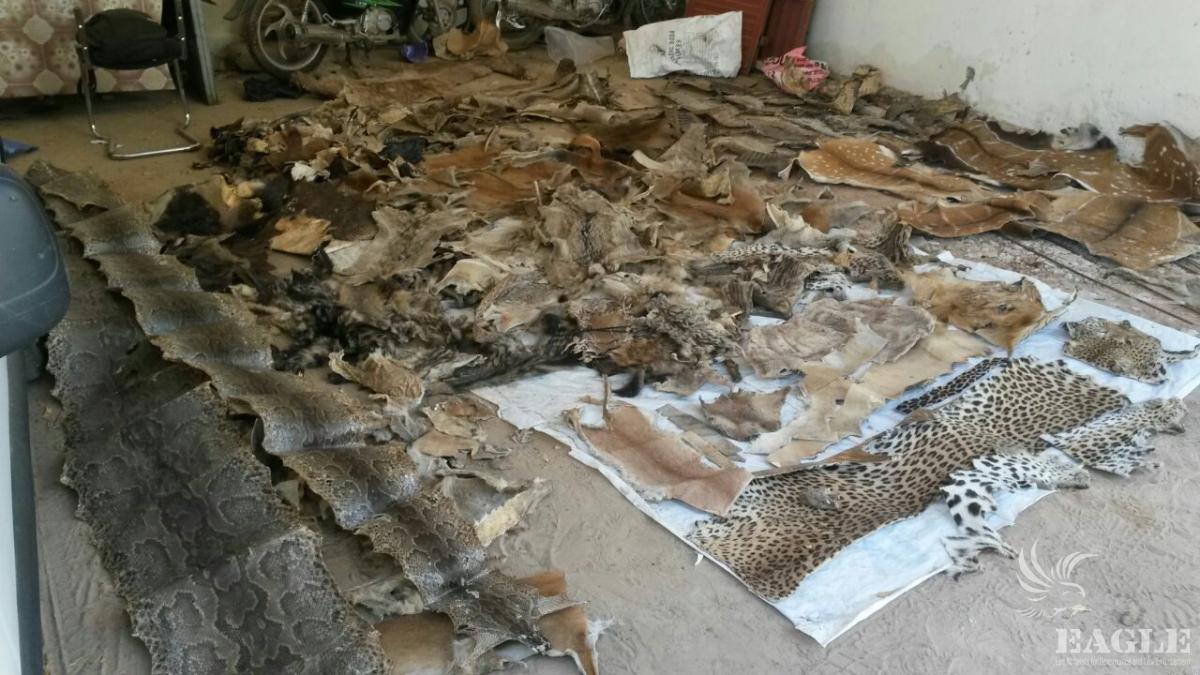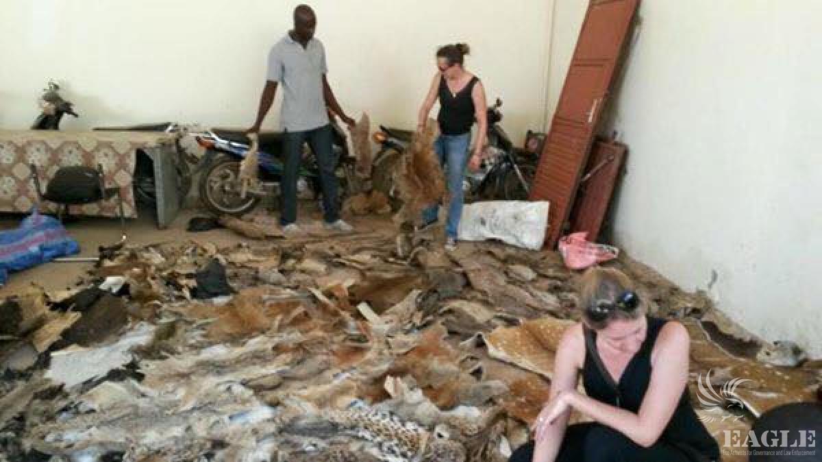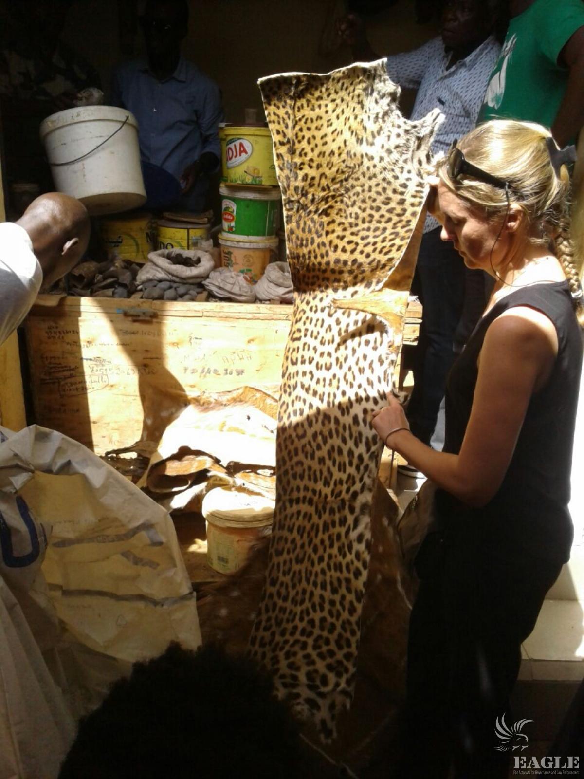 Charlotte Houpline, Cecile and the SALF team in a crackdown on illegal trade in skins! A major trafficker arrested with lion and leopard skins and total of 106 skins of 11 different protected species!