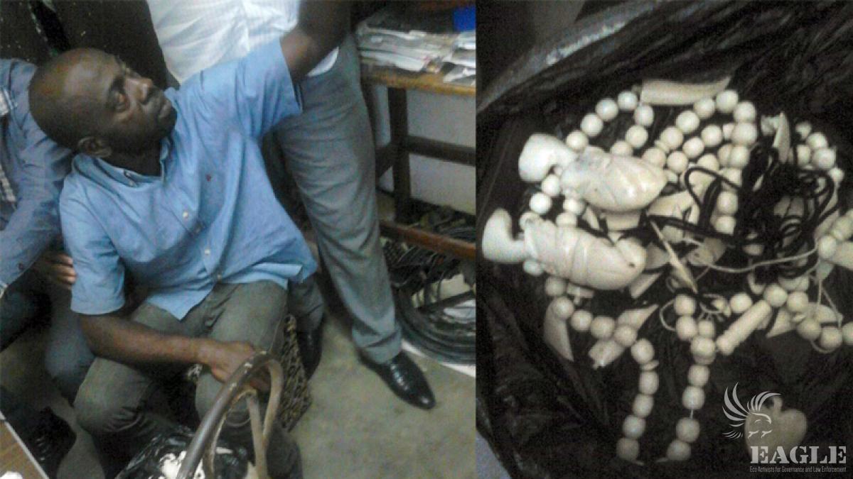 An ivory trafficker arrested in Yaounde with 15 small ivory objects.